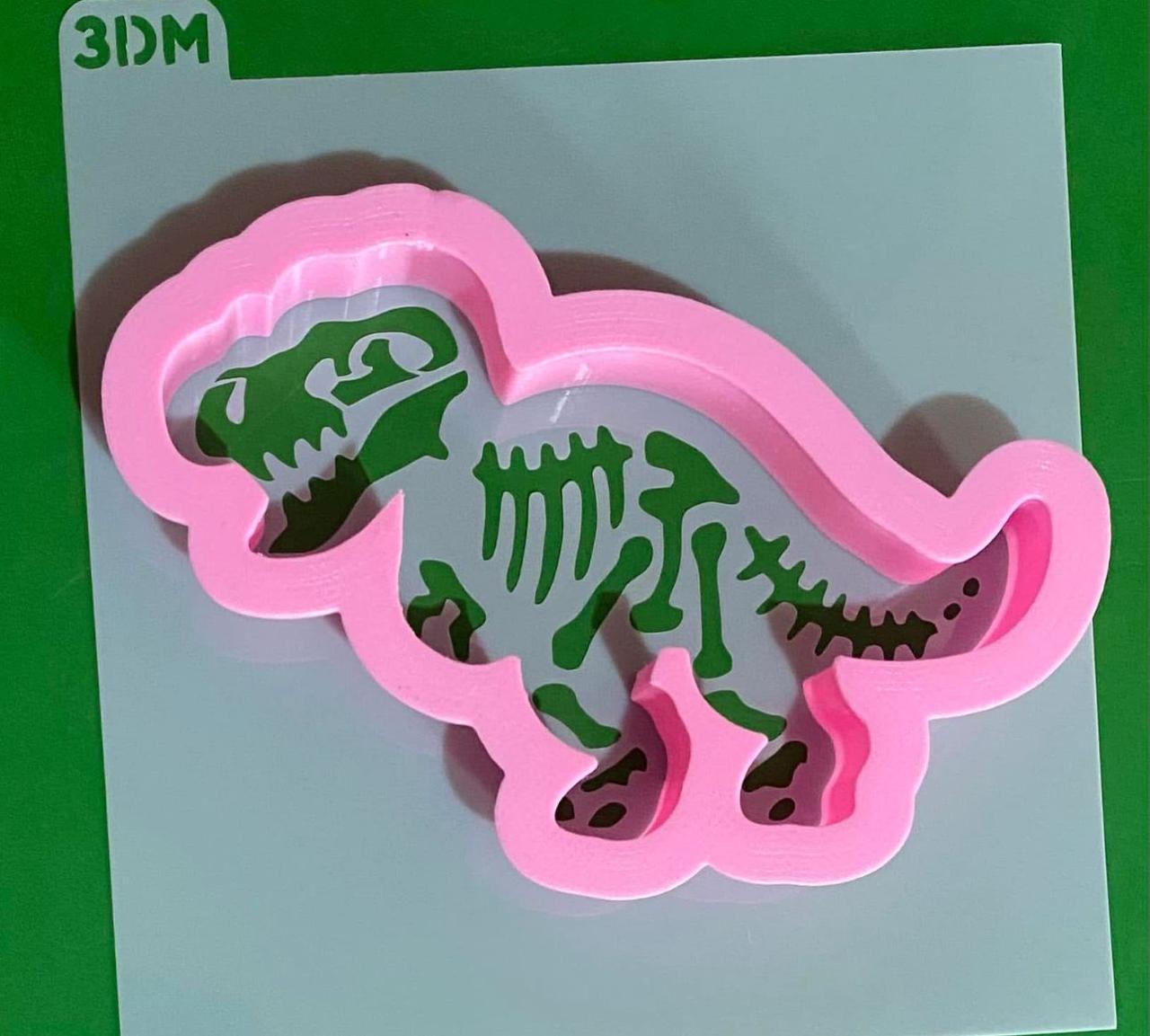 CORTADOR 10 CM Y STENCIL ESQUELETO DINOSAURIO